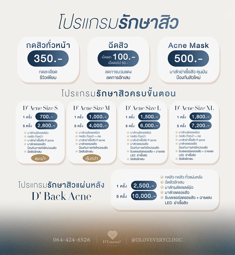 - ดูแลครบทั้ง “สิว + รอย” ไม่จบแค่สิวยุบ แต่มีแผนต่อเนื่องสำหรับรอยสิวที่หลัง