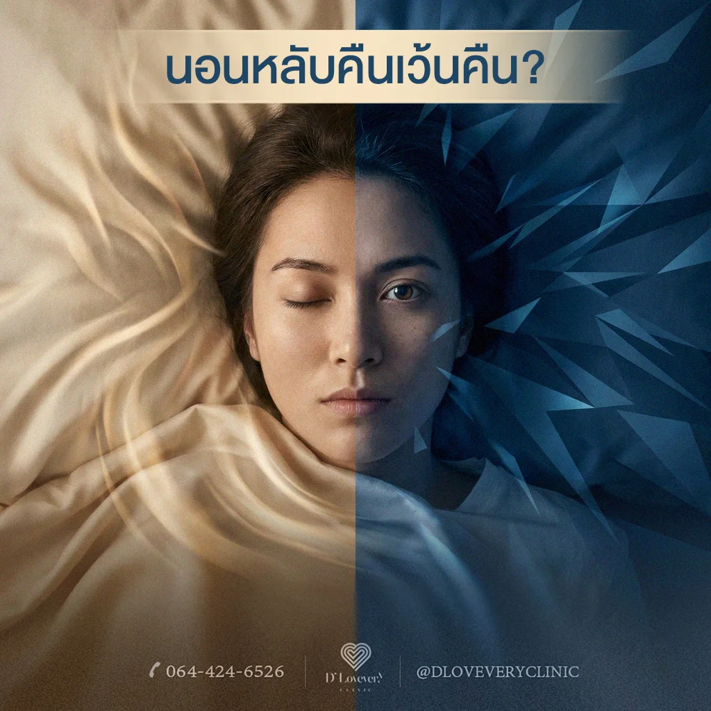 แล้วแบบไหนถึงจะเรียกว่าสัญญาณอันตรายที่ต้องมาพบหมอเพื่อตรวจฮอร์โมนแบบจริงจัง? หากอาการนอนหลับๆ ตื่นๆ แบบ “คืนเว้นคืน” นี้ไม่ได้เกิดขึ้นแค่เฉพาะตอนที่คนไข้เผลอนอนตื่นสายชดเชย แต่กลับเป็นเรื้อรัง เกิน 3 วันต่อสัปดาห์ ติดต่อกันนานเกิน 1 เดือน ร่วมกับมีสัญญาณเตือนว่าระบบฮอร์โมนเริ่มพัง เช่น ตื่นเช้ามาแล้วรู้สึกอ่อนเพลียเหมือนแบตไม่เต็ม สมองตื้อตึ้บ (Brain Fog) อารมณ์สวิงหงุดหงิดง่ายผิดปกติ หิวของหวานจัดในช่วงบ่าย หรือน้ำหนักตัวพุ่งขึ้นแบบไม่มีสาเหตุ สัญญาณเหล่านี้กำลังฟ้องว่าความผันผวนของการนอนหลับได้เข้าไปรบกวน “ฮอร์โมนคอร์ติซอล (ความเครียด)” และ “ฮอร์โมนอินซูลิน” อย่างหนักแล้วค่ะ ซึ่งหากปล่อยทิ้งไว้อาจนำไปสู่ภาวะดื้ออินซูลิน ระบบเผาผลาญพัง และโรคนอนไม่หลับเรื้อรัง (Chronic Insomnia) ได้ ถ้าคนไข้เริ่มมีอาการเหล่านี้ร่วมด้วย หมอแนะนำว่าอย่าฝืนทนจนร่างกายทรุดนะคะ ควรเข้ามาพบแพทย์เพื่อเจาะเลือดดูระดับฮอร์โมนและอาจต้องตรวจการนอนหลับ (Sleep Test) เพื่อหาต้นตอและรีบดึงสมดุลร่างกายกลับมาด่วนเลยค่ะ