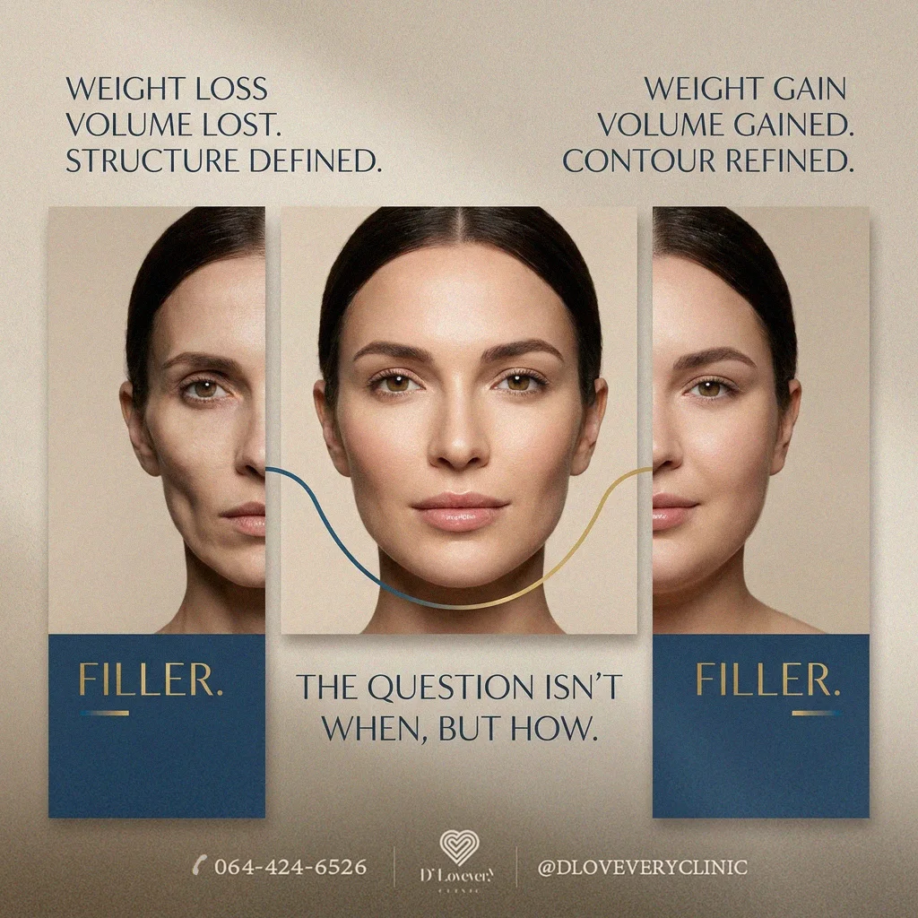 สวัสดีค่ะคนไข้ทุกคน! สำหรับใครที่กำลังมีแพลนจะปั้นหน้าสวยด้วยฟิลเลอร์ แต่ดันอยู่ในช่วงที่กำลังปั้นหุ่นไปด้วย แล้วเกิดความสงสัยว่า “หมอคะ หนูควรฉีดฟิลเลอร์ตอนที่ผอมลงแล้ว หรือฉีดตอนที่น้ำหนักยังขึ้นๆ อยู่ดีคะ?” วันนี้หมอจะมาไขข้อข้องใจให้เคลียร์ เพื่อให้ผลลัพธ์บนใบหน้าของคนไข้ออกมาสวย ดูเป็นธรรมชาติ และคุ้มค่าที่สุดค่ะ