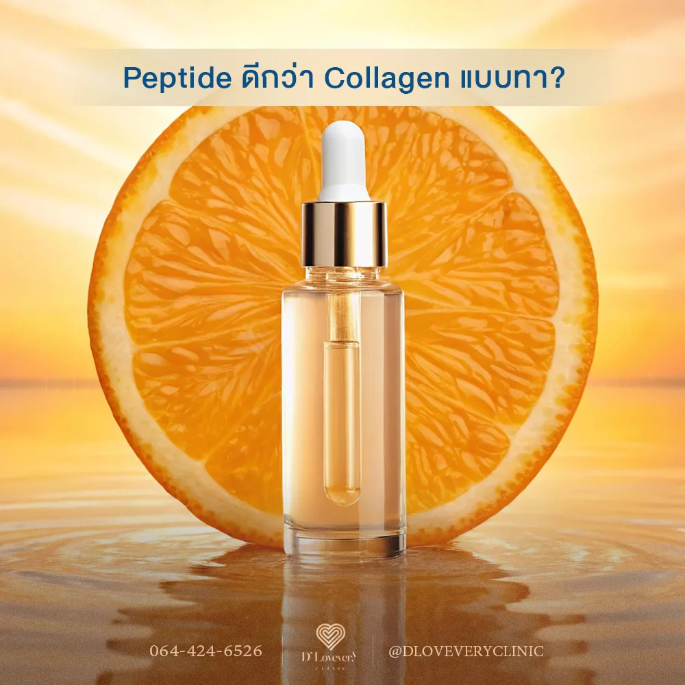 เปปไทด์มีประสิทธิภาพดีกว่าคอลลาเจนชนิดทา เนื่องจากมีโมเลกุลขนาดเล็ก ทำให้สามารถซึมเข้าสู่ผิวได้ง่ายและลึกกว่า ในขณะที่คอลลาเจนมีโมเลกุลใหญ่กว่า 300 kDa จึงซึมผ่านได้แค่ชั้นผิวหนังกำพร้า (Stratum corneum) และให้ผลลัพธ์เพียงความชุ่มชื้นเท่านั้น แต่เปปไทด์ทำหน้าที่เป็น Signal Molecule ที่ส่งสัญญาณกระตุ้นเซลล์ไฟโบรบลาสต์ให้ผลิตคอลลาเจนและอีลาสตินขึ้นมาใหม่ พร้อมทั้งช่วยชะลอการสลายตัวของคอลลาเจนเดิม ผลลัพธ์คือช่วยลดเลือนริ้วรอย ทำให้ผิวมีความยืดหยุ่น โครงสร้างผิวแข็งแรง และดูอ่อนเยาว์ขึ้นอย่างเห็นได้ชัด