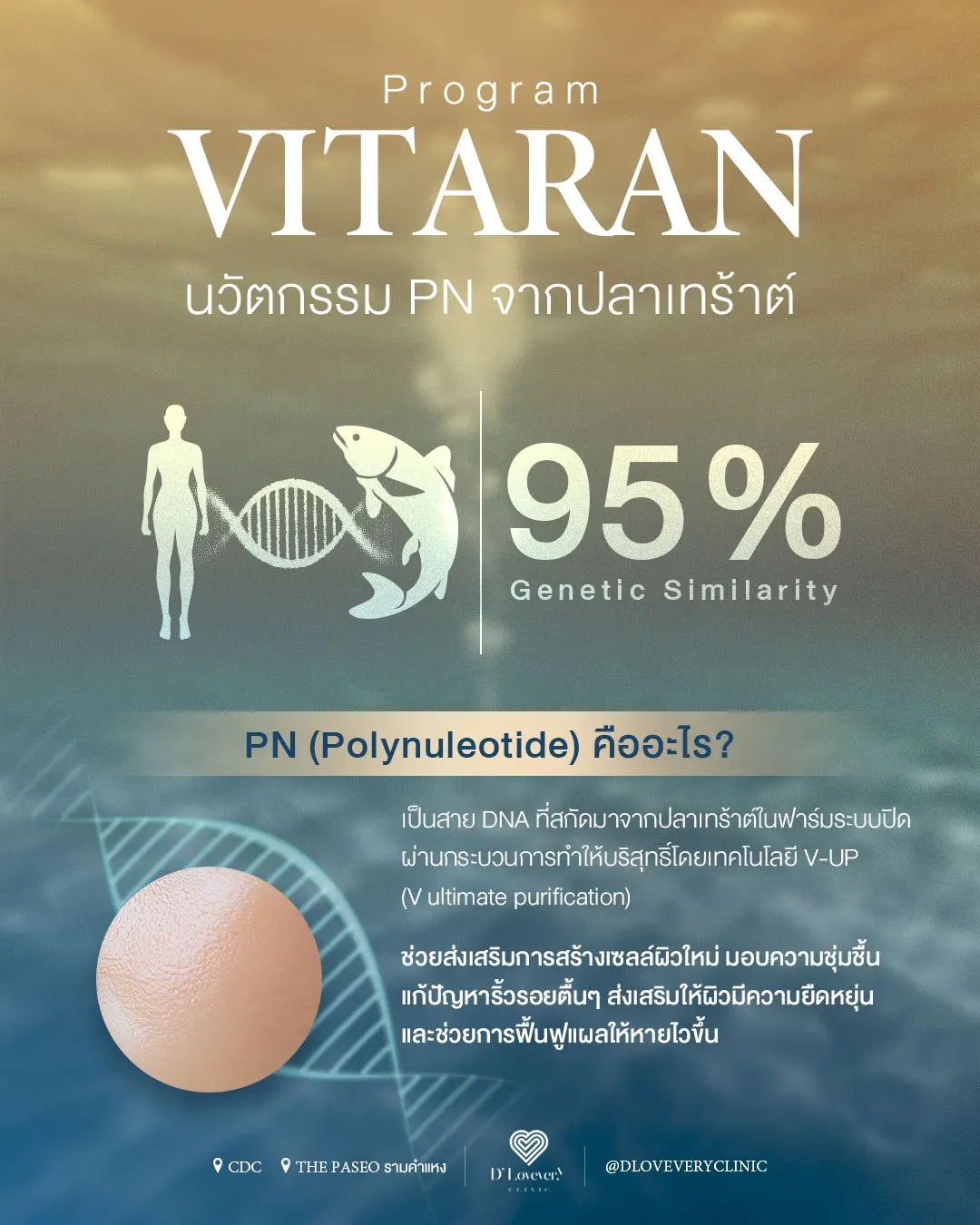 โปรแกรม Vitaran คือ สารฉีดฟื้นฟูผิว (Skin Booster) ในกลุ่ม Polynucleotide (PN) ซึ่งเป็นสารสกัดบริสุทธิ์จาก DNA ของปลาแซลมอนหรือปลาเทราท์ที่ถูกเพาะเลี้ยงในระบบปิดที่ได้มาตรฐานระดับสูง (พัฒนาโดย LG Chem Life Sciences จากประเทศเกาหลีใต้)