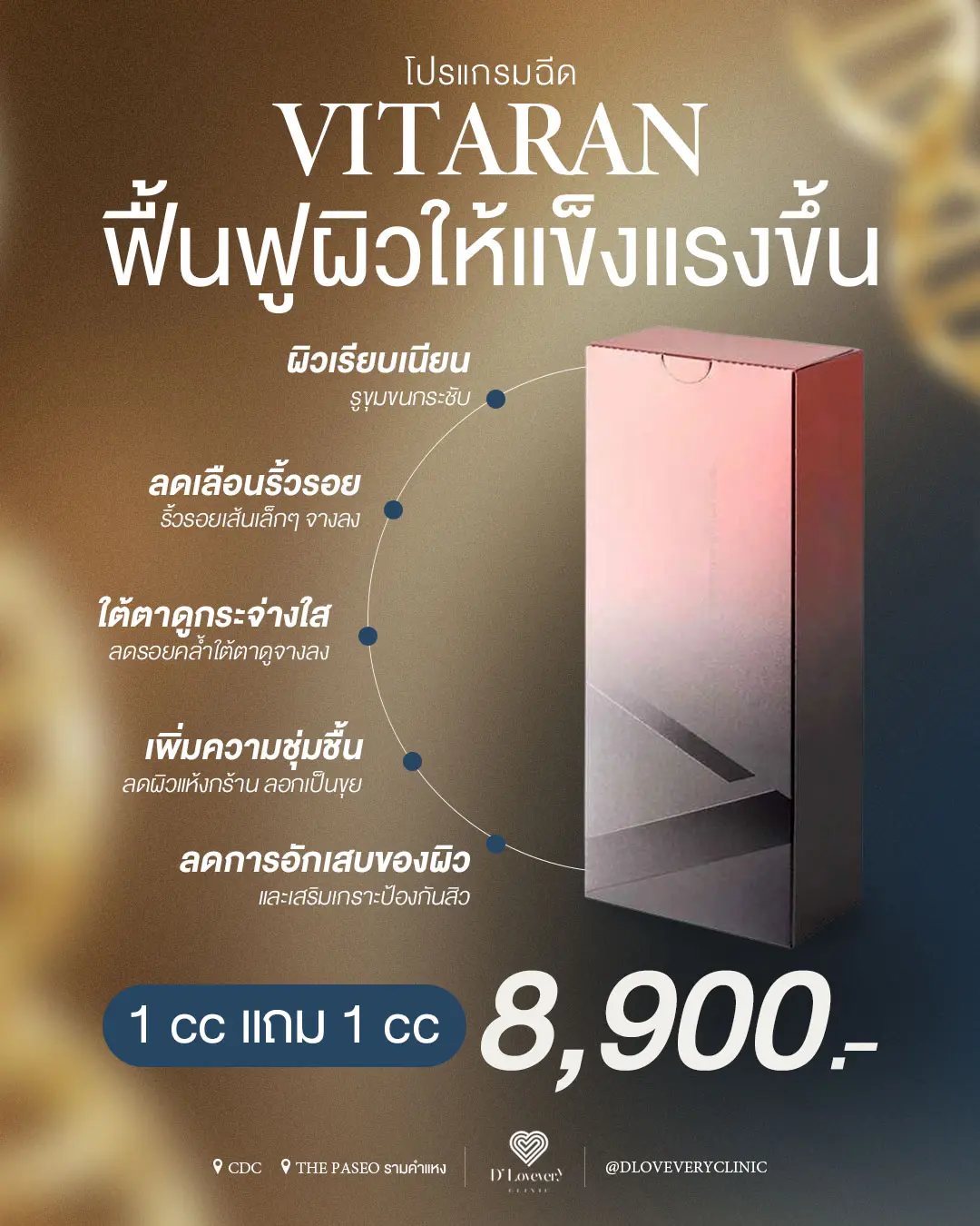ผิวหนังถือเป็นอวัยวะที่มีพื้นที่มากที่สุดและทำหน้าที่ปกป้องร่างกายของเรา การดูแลผิวให้แข็งแรงจากรากฐานจึงเป็นสิ่งสำคัญ หวังว่าข้อมูลของโปรแกรม Vitaran ในบทความนี้ จะช่วยสร้างความเข้าใจที่ถูกต้องให้แก่คนไข้ทุกท่านนะคะ ทั้งนี้ ก่อนตัดสินใจทำหัตถการใดๆ ควรเข้ามาพบแพทย์เพื่อรับการตรวจประเมินปัญหาผิวหน้าอย่างละเอียด เพื่อให้ได้รับการวางแผนการดูแลผิวที่ตรงจุดและปลอดภัยที่สุดค่ะ