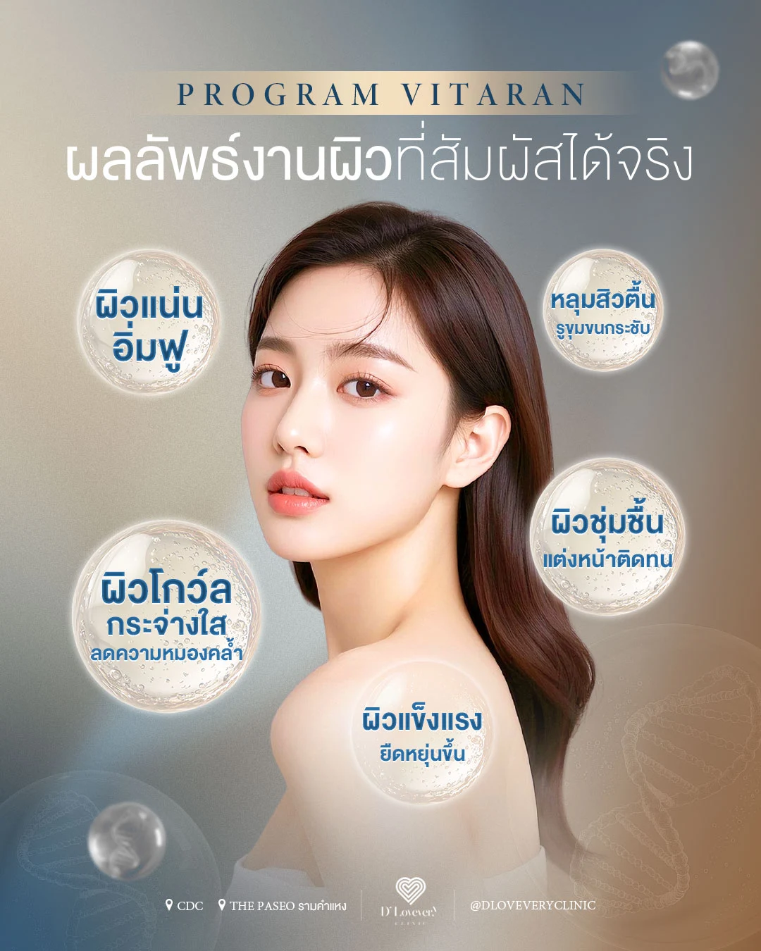 ผิวหนังถือเป็นอวัยวะที่มีพื้นที่มากที่สุดและทำหน้าที่ปกป้องร่างกายของเรา การดูแลผิวให้แข็งแรงจากรากฐานจึงเป็นสิ่งสำคัญ หวังว่าข้อมูลของโปรแกรม Vitaran ในบทความนี้ จะช่วยสร้างความเข้าใจที่ถูกต้องให้แก่คนไข้ทุกท่านนะคะ ทั้งนี้ ก่อนตัดสินใจทำหัตถการใดๆ ควรเข้ามาพบแพทย์เพื่อรับการตรวจประเมินปัญหาผิวหน้าอย่างละเอียด เพื่อให้ได้รับการวางแผนการดูแลผิวที่ตรงจุดและปลอดภัยที่สุดค่ะ