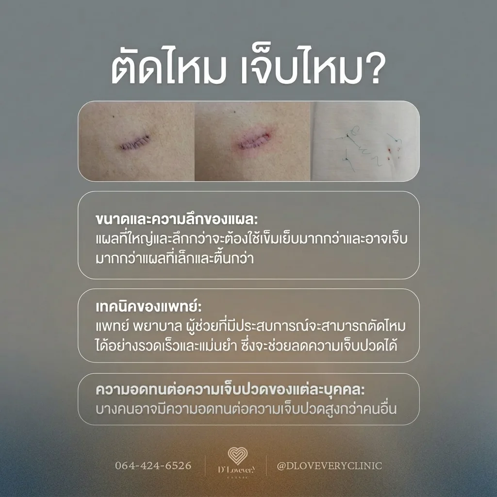 - เทคนิคของแพทย์: แพทย์ พยาบาล ผู้ช่วยที่มีประสบการณ์จะสามารถตัดไหมได้อย่างรวดเร็วและแม่นยำ ซึ่งจะช่วยลดความเจ็บปวดได้